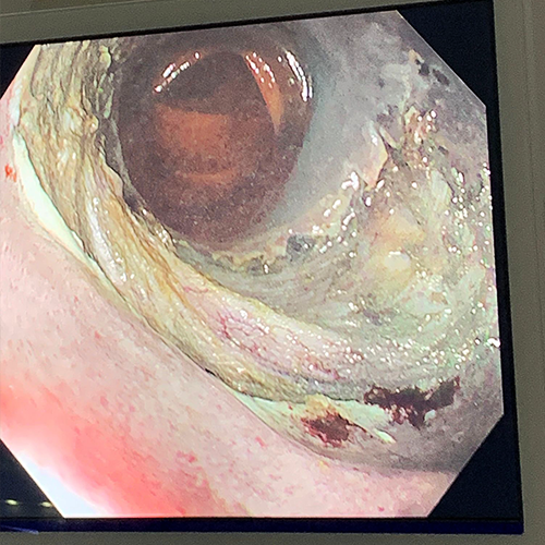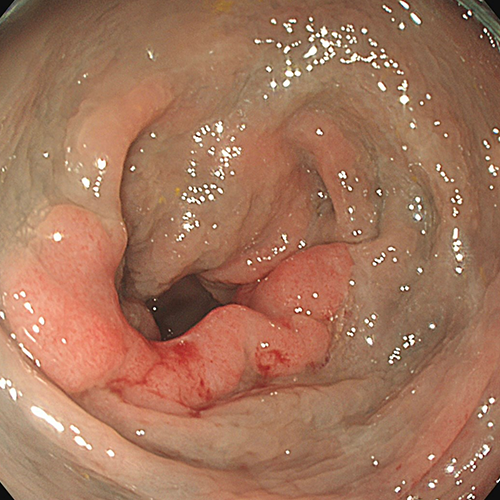 The lesion was located in a challenging position in the Splenic flexure of the left colic of the colon.
