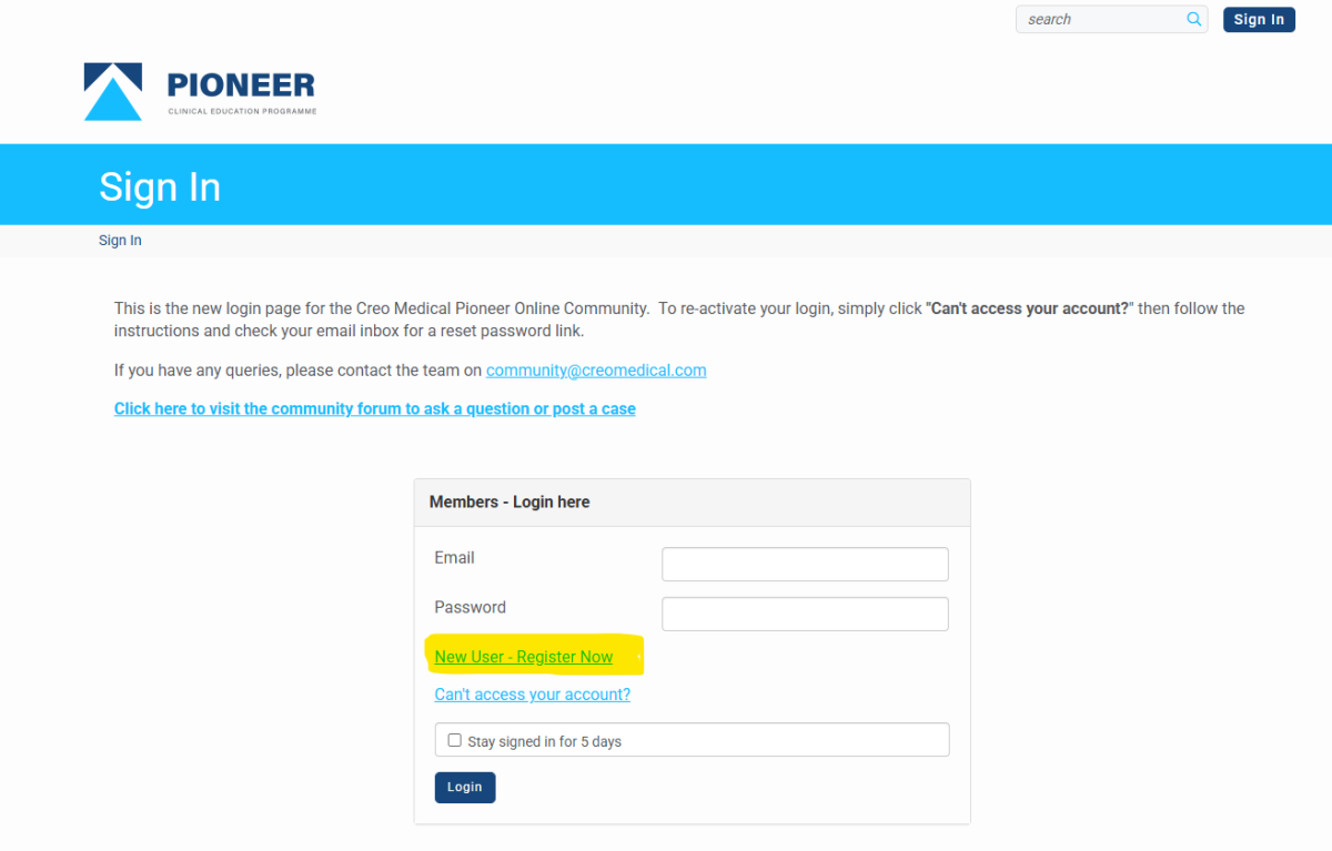 Our community platform is for Healthcare Professionals, who have embarked upon our clinical pioneering journey to use our innovative Advanced Energy devices. On this community platform you can collaborate with peers to share, discuss, discover, and develop new approaches using Creo Medical's Advanced Energy, to support your learning journey as you progress through the Pioneer Programme and beyond. You can also join our community via our app if you are a clinician wanting to explore more about our technology, please follow the app instructions to gain access.